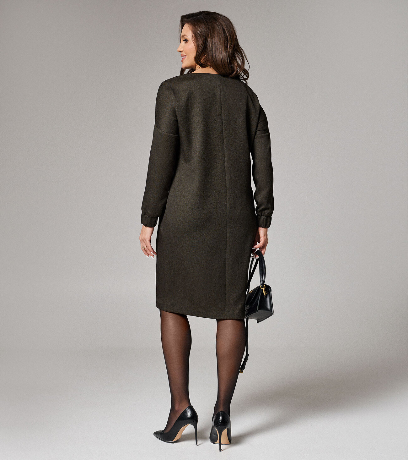 Эффектное лаконичное платье из мягкой немнущейся ткани.Удобный свободный силуэт и спущенная линия плеча актуальны в этом сезоне. Модный крой, мягкой формы рукава, присборенные по низу на широкую резинку,отрезные бочки фигурной формы с оформленными в них карманами ,всё выглядит безупречно помогает подчеркнуть образ молодой,энергичной и модной девушки,которая не боится экспериментов и стремится быть в центре внимания. Застёжка сзади на потайную молнию в среднем шве.Размер 50: Дл.спины от высшей плечевой точки до талии - 42.5см, Длина изделия - 99.5см, Длина рукава - 41см, Ширина плеча - 28см, Ширина по бедрам - 58см, Ширина по груди - 54.5см, Ширина рукава - 18см;