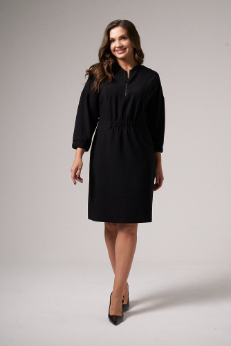 Мягкое и элегантное платье прилегающего силуэта выполнено из приятного на ощупь трикотажа.Рукав втачной ,длинный. Вырез горловины асимметричный,декорирован деталью со складкой,имитирующей воротник. На уровне ниже далии выполнен асимметричный подрез,декорированный пряжкой. Нижеподреза офирмлены складка,переходящая в шлицу снизу, и косой вход во внутренний карман. Длина платья ниже колена. Практичное и стильное платье на каждый день и для работы в прохладную погоду.Размер 54: Дл.спины от высшей плечевой точки до талии - 43,5см, Длина изделия - 110,5см, Длина рукава - 62см, Ширина плеча - 11,8см, Ширина по бедрам - 59см, Ширина по груди - 57см, Ширина рукава - 19,7см;