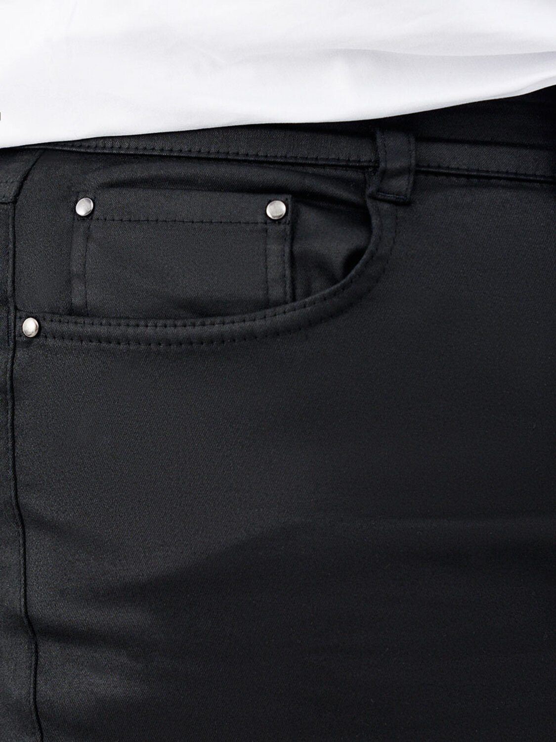 Модные брюки slim выполнены из хлопковой ткани имитирующей под кожу. Брюки с удобной посадкой в джинсовом стилке, на поясе. По переду карманы, на задних частях брюк имеются фигурные накладные карманы, которые зрительно уменьшают фигуру сзади. Продуманный крой и высокая посадка делают фигуру визуально стройной и подтянутой. Узкие брюки slim отличная основа базового гардероба для девушек, женщин, в зависимости от обуви и верха, подойдут для образов в стиле спорт шик, классика, в неформальном, деловом и спортивном стиле. Такие брюки идеально подойдут для тех, кто выбирает стиль и качество.Размер 44: Высота посадки - 25см, Длина брюк с поясом - 102см, Длина по внутреннему шву - 75см, Ширина брючин сверху - 55см, Обхват брюк по низу - 28см, Ширина по бедрам - 46см, Ширина по талии - 37см;
