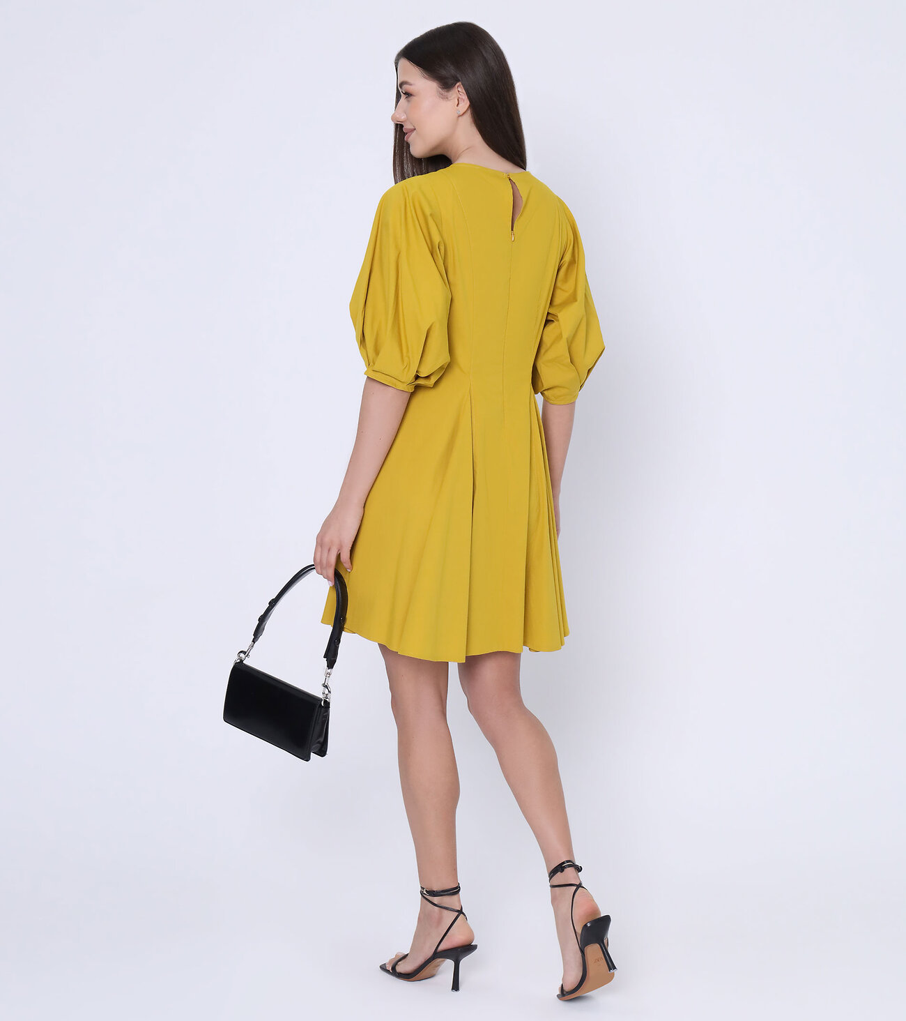 Летнее хлопковое платье станет основой для создания красивых образов. Надевая его на прогулку, дружескую или романтическую встречу, можете быть уверены, что выглядите элегантно. Уместно дополнить наряд обувью на каблуках или низком ходу, аксессуарами. Женское хлопковое платье длиной выше колена имеет полуприталенный фасон. Фигурные вертикальные швы по лифу переходят в симметричные парные складки на свободной юбке. Оригинальность изделию придают пышные втачные рукава на манжетах. Легкая ткань из 100% хлопка, из которой пошито мини платье, максимально пропускает воздух, обеспечивая комфорт в жару. Спешите купить легкое короткое платье на выгодных условиях.Размер 44: Длина изделия - 93см, Длина рукава - 40,5см, Ширина плеча - 7см, Ширина по груди - 46см, Ширина по талии - 44см, Ширина рукава - 30,5см;