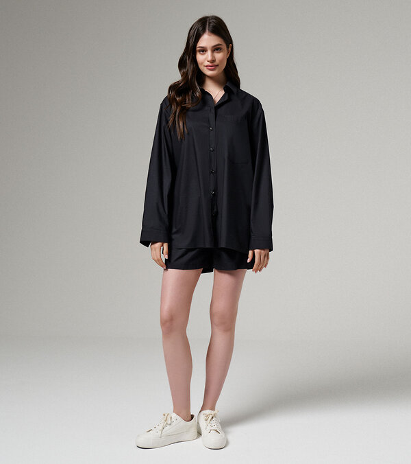 Кимплект женский из хлопковой ткани для повседневной носки. Комплект состоит из шорт и блузы. Блуза свободная прямого кроя с фвронтальной застежкой на пуговицы и воротником- стойкой. По переду блузы накладной карман. По спинке отрезная кокетка. Рукав длинный оформлен притачной манжетой. Шорты свободные, на резинке, что очень удобно. Шорты длиной выше колена. Отличный вариант для жарких дней.Размер 42: Длина изделия - 73см, Длина рукава - 58см, Обхват шеи - 42см, Ширина плеча - 17,5см, Ширина по груди - 55см, Ширина по низу - 59см, Ширина рукава - 20см; Шорты