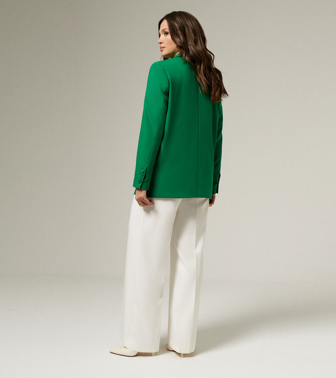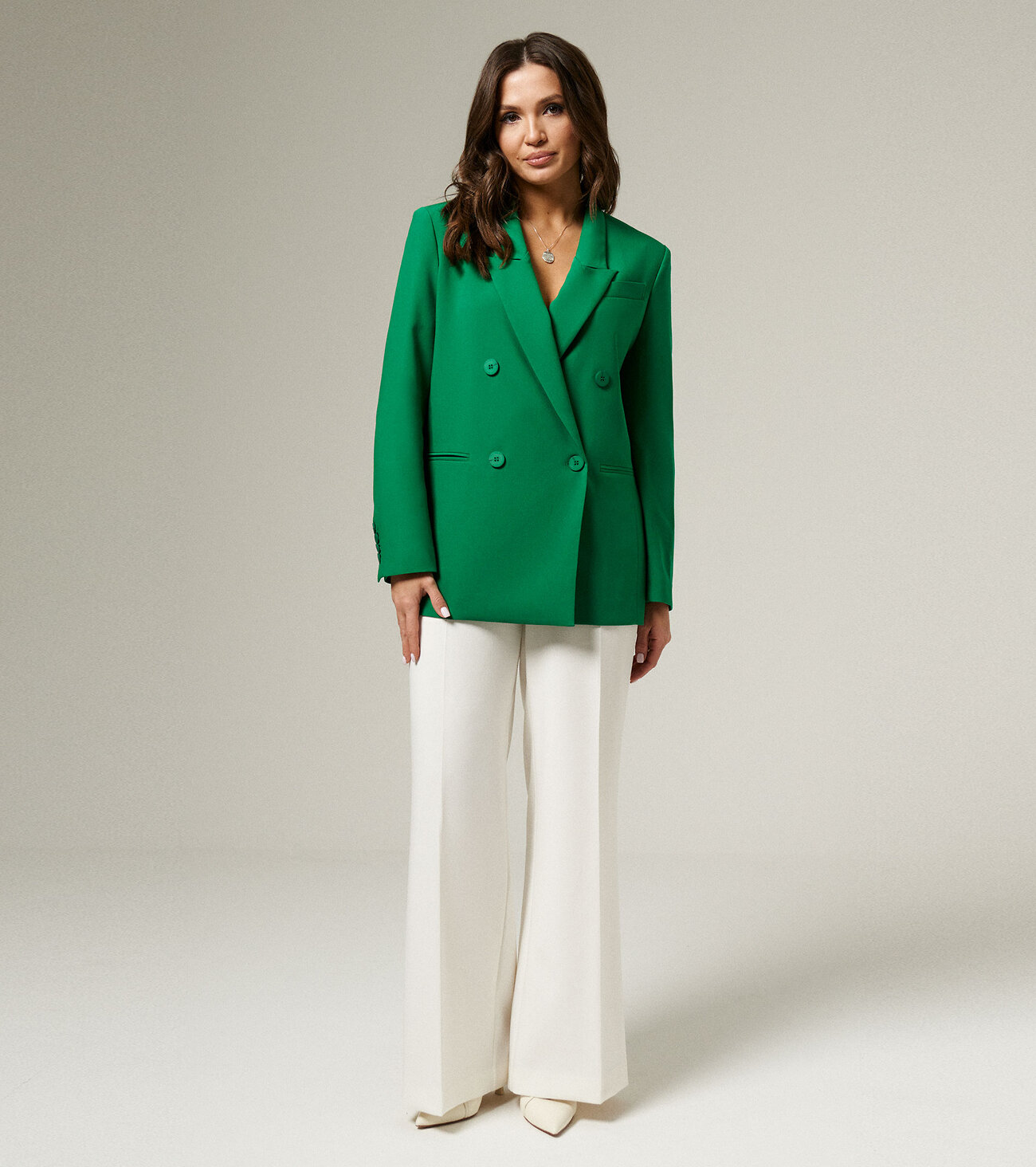 Удлиненный жакет прекрасно дополнит брюки в деловом стиле, уже имеющиеся в вашем арсенале модной одежды. Жакет женский оверсайз имеет достаточно свободный крой, не подразумевает посадку по фигуре. Вы можете носить деловой жакет как самодостаточный элемент, поддевая под низ нижнее белье, топ, однотонную футболку, майку. Двубортный жакет женский – отличный вариант. Поэтому он хорошо смотрится с узкими и широкими штанами. Выполнен жакет из трикотажа, хорошо держит форму. Вы можете купить черный классический пиджак по выгодной цене в размерах 42-50.Размер 44: Длина изделия - 70см, Длина рукава - 62см, Ширина плеча - 13.3см, Ширина по груди - 54см, Ширина по низу - 55см, Ширина рукава - 18.4см;