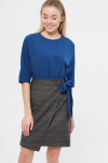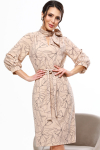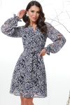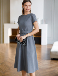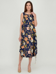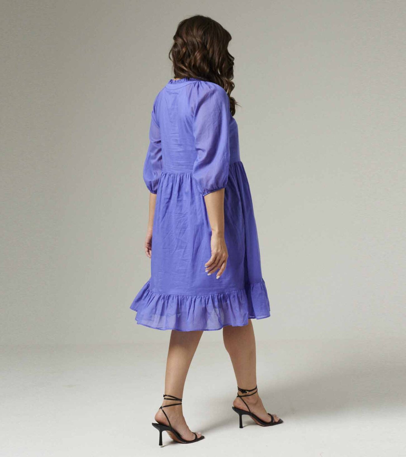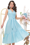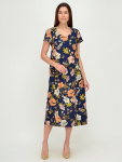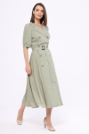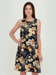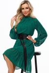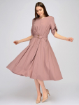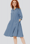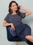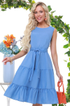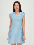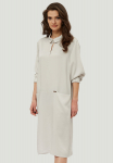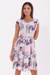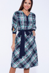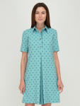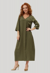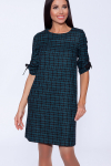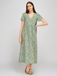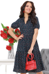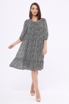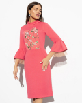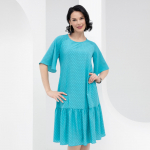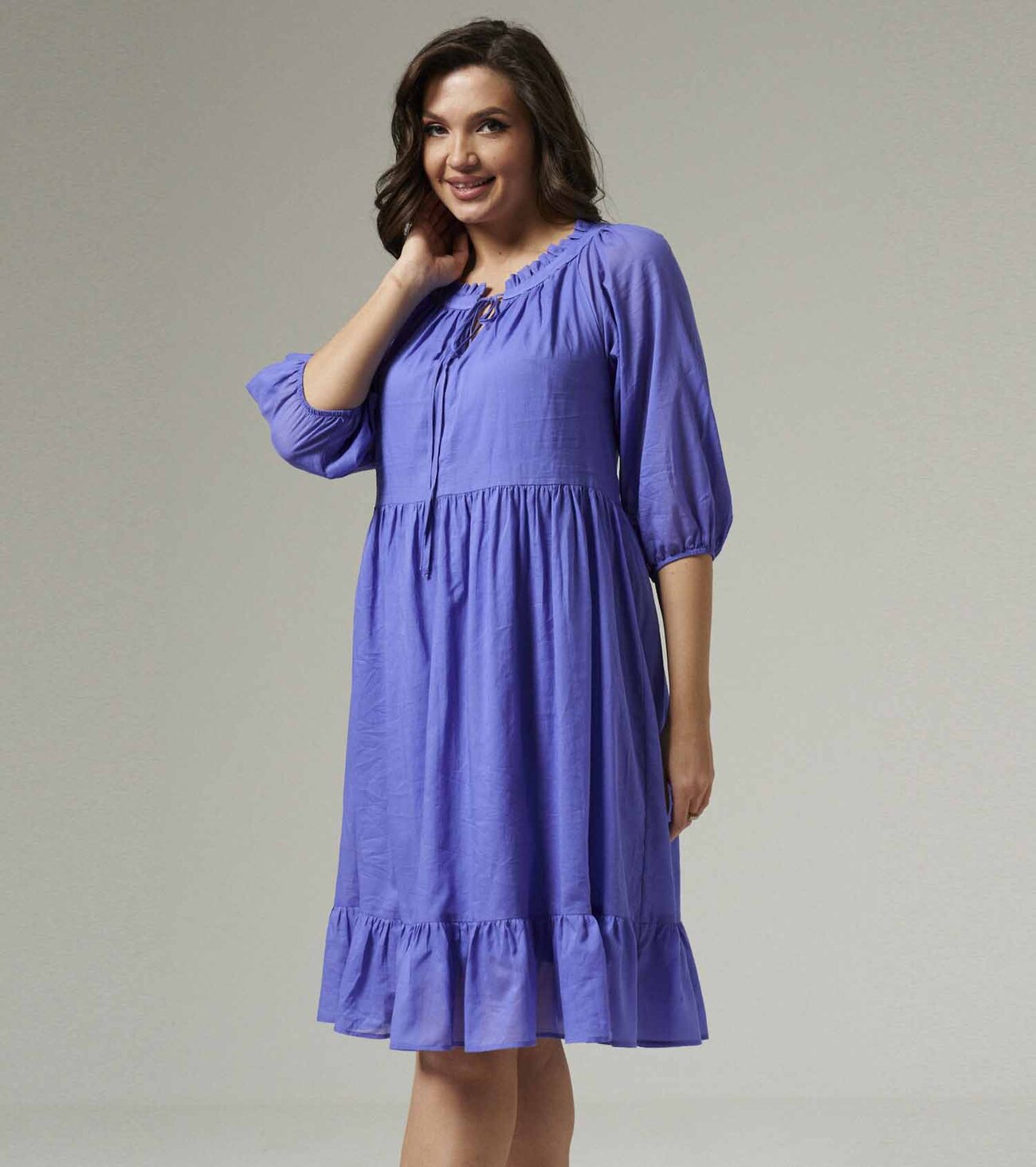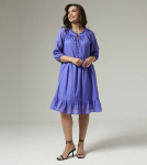 Платье из хлопковой ткани для повседневной носки. Платье на вискозной подкладке. Изделие свободного силуэта с укороченым рукавом реглан, оформленым манжетой на резинке. Изделие отрезное по талии, по низу юбки пришита рюша. Горловина оформлена стойкой.Длина изделия до колена.Размер 46: Дл.спины от высшей плечевой точки до подреза - 34см, Длина изделия - 99см, Длина рукава - 47см, Ширина по груди - 51см, Ширина по подрезу - 50см, Ширина рукава - 27,1см;