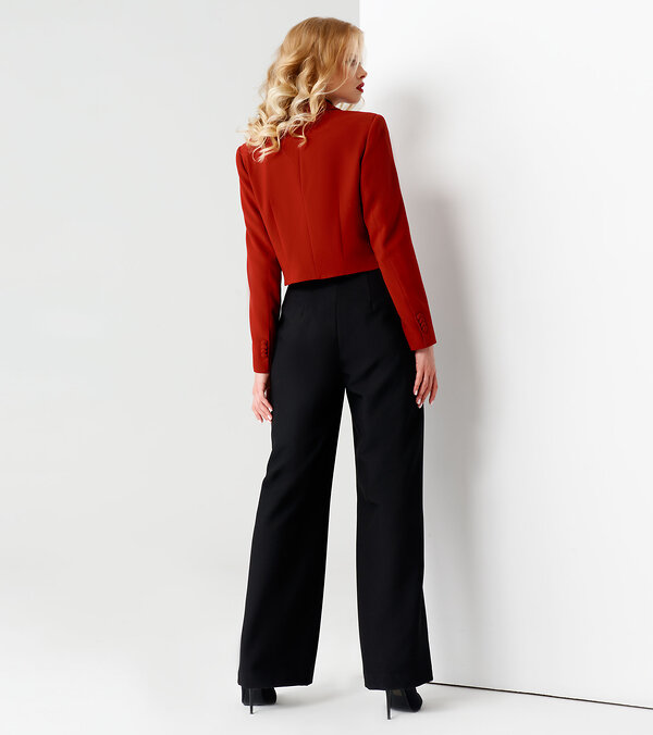 Элегантный жакет женский - модная вещь для работы и особых случаев. Укороченные жакеты стали хитом сезона, и эта модель не исключение! Приталенный жакет женский трикотажный с английским воротником позволит создать стильные и женственные образы с юбками, широкими брюками, кожаными шортами и даже джинсами. Короткий жакет изготовлен из ткани, которая буквально «дышит» и хорошо пропускает воздух. Размер 42: Длина изделия - 43см, Длина рукава - 62см, Ширина плеча - 12см, Ширина по груди - 47см, Ширина по низу - 41см, Ширина рукава - 16см;