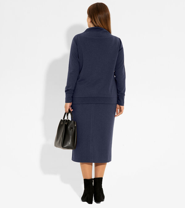 Элегантный трикотажный 2-хпредметный костюм. Максимально удобный и мягкий костюм выглядит очень презентабельно и эффектно. Маскирует недостатки фигуры и подчёркивает достоинства. Джемпер прямого силуэта с втачными длинными рукавами с высокими отрезными двойными манжетами по низу. Воротник двойной мягкой формы ,оформлен в резы фигурной формы,выполненные по переду и спинке Юбка -карандаш длиной до середины голени также выполнена из мягкого и формоустойчивого трикотажного полотна.На поясе с резинкой .От боковых швов спереди оформлены косые входы во внутренние карманы.Размер 54: Длина изделия - 62,5см, Длина рукава - 62см, Ширина плеча - 11см, Ширина по груди - 58см, Ширина по низу - 54,5см, Ширина рукава - 19,5см; Юбка