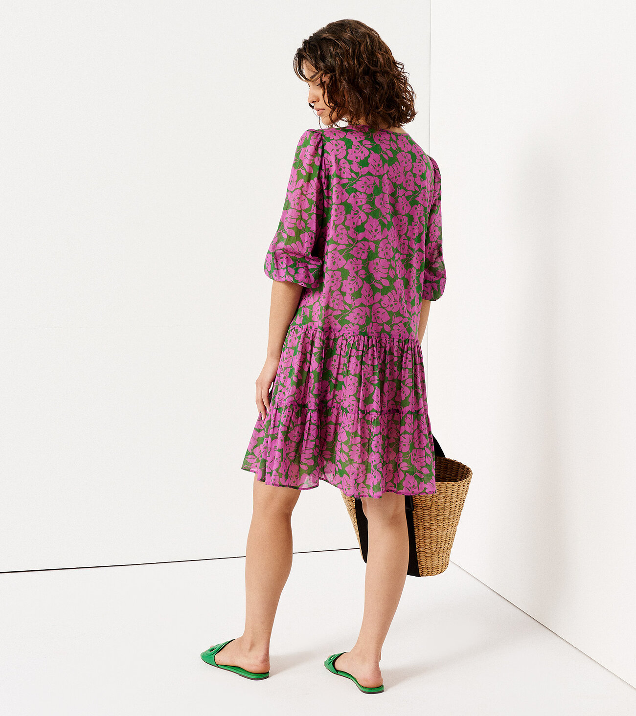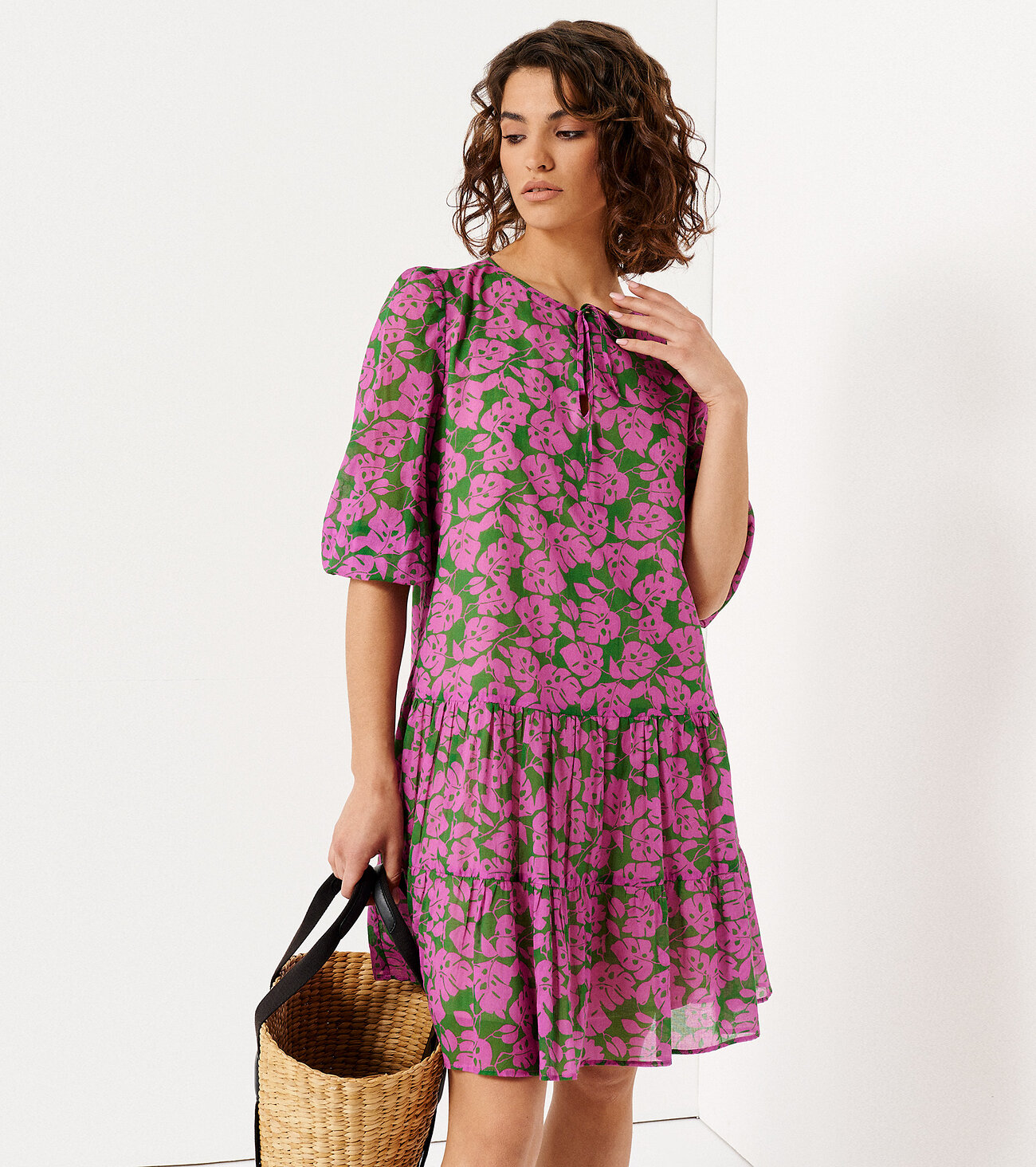 Платье из хлопковой ткани для повседневной носки. Платье с укороченым втачным рукавом, круглой горловиной. Изделие на вискозной подкладке. Платье с двумя отрезными ярусами. Длина платья до колена.Размер 44: Длина изделия - 90см, Длина рукава - 48см, Ширина плеча - 8,5см, Ширина по бедрам - 53см, Ширина по груди - 48см, Ширина рукава - 18,5см;