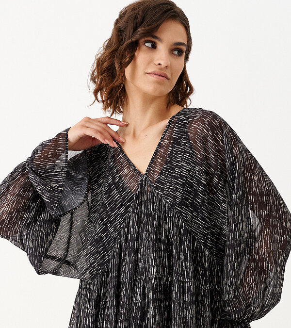 Размер 42: Длина изделия от высшей плечевой точки до низа - 92см, Длина рукава - 73см, Ширина по груди - 56см, Ширина рукава вверху - 33,5см; Нижнее платье