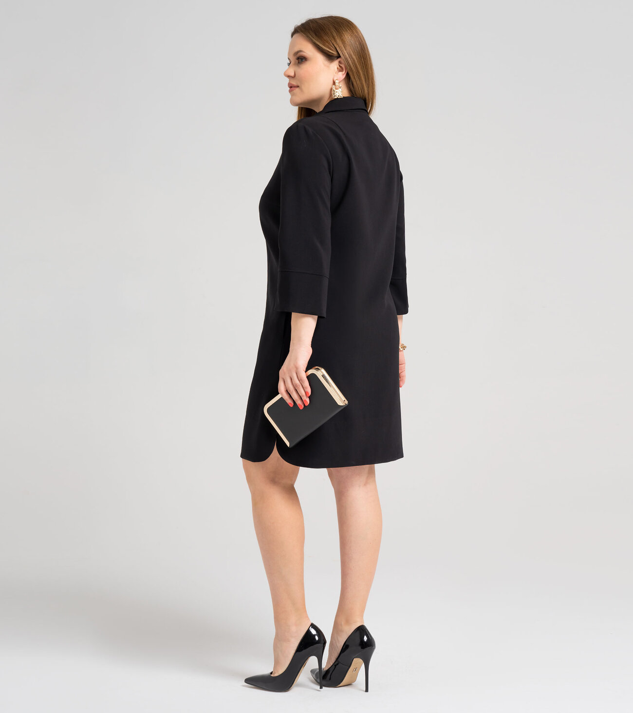 Стильное платье, помогает создать законченный, многогранный, но лаконичный образ. Хороший вариант, как для будней, так и для выхода в свет. Платье прямого силуэта, воротник отложной, с центральной застежкой на пуговицы, в боковых швах обработаны боковые карманы, низ платья с закругленными разрезами. Рукава втачные, длина 7/8, слегка расширенные к низуРазмер 50: Длина изделия - 93,5см, Длина рукава - 48см, Длина до талии - 43,3см, Обхват шеи - 44,5см, Ширина плеча - 12,8см, Ширина по бедрам - 57см, Ширина по груди - 54см, Ширина рукава - 18,8см;
