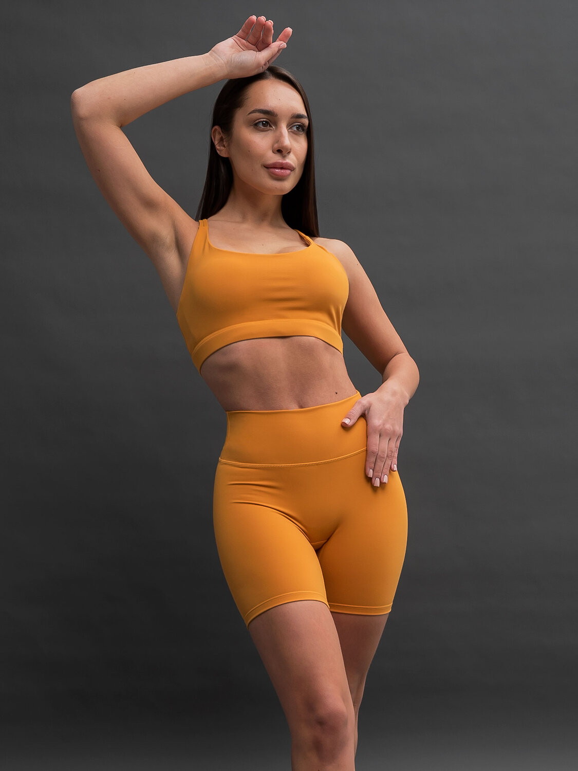 Спортивный женский топ-бра из эластичной ткани. Короткий топ с открытой спиной на тонких четырех бретелях, красиво перекрещивающихся на спине. Трендовые цвета и уникальные плоские швы. Женский спортивный кроп топ для фитнеса и йоги сделает тренировки легкими, движения свободными, а занятия спортом в радость. Уникальные плоские швы не впиваются в кожу, не натирают при движениях, создавая приятное соприкосновение с телом. Долгие занятия йогой или активные занятия на тренажерах больше не принесут дискомфорта. Удобный укороченный топ для женщин подходит для тренировок и для занятий в тренажерном зале, пилатеса, для бега, для йоги и фитнеса, занятий танцами и прогулок. Комфортная посадка топика красиво сядет по фигуре, подчеркнув природные линии тела. Топ с чашками надежно поддержит грудь даже при активных движениях. Топ без косточек. Плотная резинка под грудью по краю спортивного топа надежно зафиксирует изделие на теле. Топ с вырезом на спине, дополнительное отверстие элегантной формы способствует воздухопроницаемости и дополнительному охлаждающему эффекту. Стильный и современный топ для девушек прочно вошел в современные образы, стирая грань повседневной и спортивной одежды. Модный топик - это не просто одежда для фитнеса, это базовая вещь в женском гардеробе. Можно надевать топ с чашками под пиджак, под рубашку, в качестве первого слоя под одежду. Бюстье сочетается с джинсами, спортивными леггинсами, велосипедками. Такая укороченная майка подойдет как белье под объемный свитер с открытым плечом.