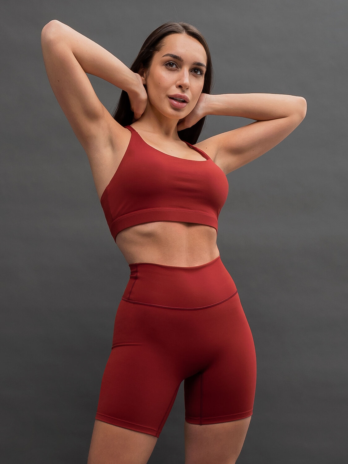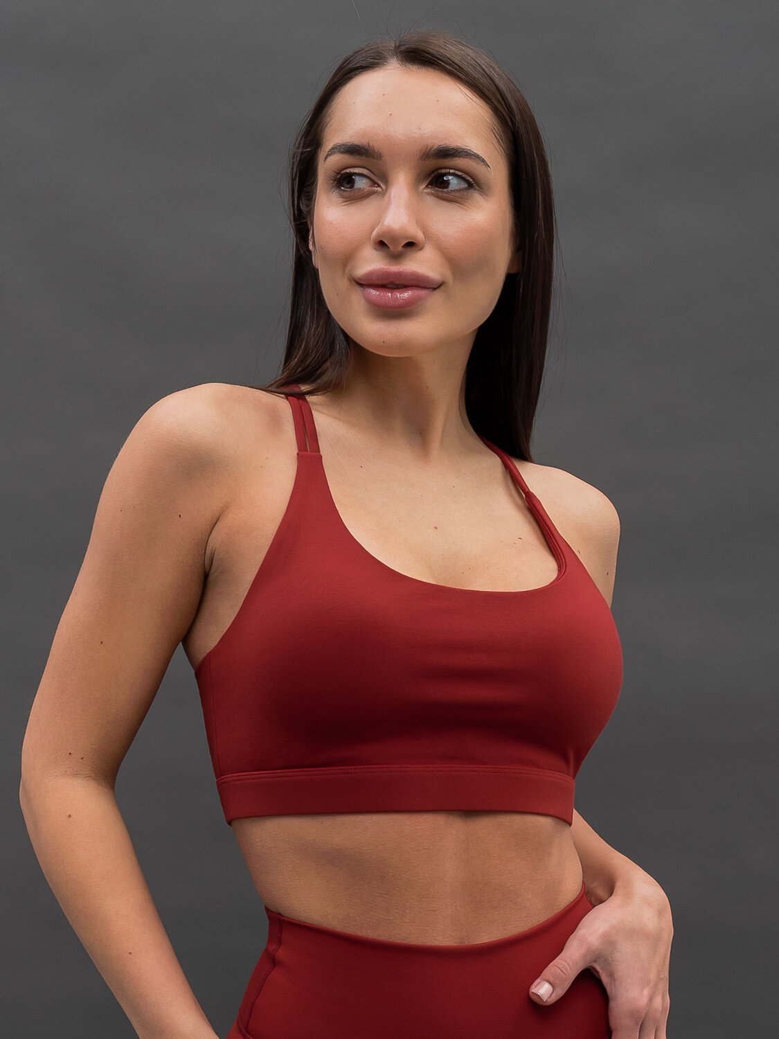 Спортивный женский топ-бра из эластичной ткани. Короткий топ с открытой спиной на тонких четырех бретелях, красиво перекрещивающихся на спине. Трендовые цвета и уникальные плоские швы. Женский спортивный кроп топ для фитнеса и йоги сделает тренировки легкими, движения свободными, а занятия спортом в радость. Уникальные плоские швы не впиваются в кожу, не натирают при движениях, создавая приятное соприкосновение с телом. Долгие занятия йогой или активные занятия на тренажерах больше не принесут дискомфорта. Удобный укороченный топ для женщин подходит для тренировок и для занятий в тренажерном зале, пилатеса, для бега, для йоги и фитнеса, занятий танцами и прогулок. Комфортная посадка топика красиво сядет по фигуре, подчеркнув природные линии тела. Топ с чашками надежно поддержит грудь даже при активных движениях. Топ без косточек. Плотная резинка под грудью по краю спортивного топа надежно зафиксирует изделие на теле. Топ с вырезом на спине, дополнительное отверстие элегантной формы способствует воздухопроницаемости и дополнительному охлаждающему эффекту. Стильный и современный топ для девушек прочно вошел в современные образы, стирая грань повседневной и спортивной одежды. Модный топик - это не просто одежда для фитнеса, это базовая вещь в женском гардеробе. Можно надевать топ с чашками под пиджак, под рубашку, в качестве первого слоя под одежду. Бюстье сочетается с джинсами, спортивными леггинсами, велосипедками. Такая укороченная майка подойдет как белье под объемный свитер с открытым плечом.