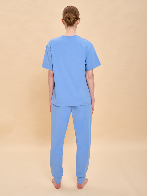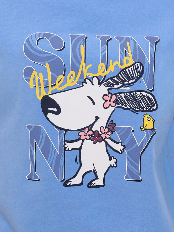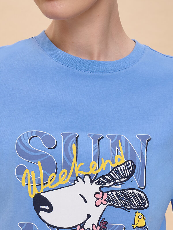 Костюм пижамный женский. В составе ткани преобладает высококачественный хлопок — комплект для сна мягкий, гипоаллергенный и хорошо пропускает воздух. В хлопковой пижаме вам будет комфортно и уютно во время сна. Эластан помогает модели надолго сохранить первоначальную форму. Свободная футболка со спущенным плечом и широкими рукавами, брюки умеренного объёма — в пижаме очень удобно спать. В поясе брюк мягкая и широкая резинка — не перекручивается и не давит. Отделка горловины из эластичной рибаны — она не растягивается, пижаму удобно надевать и снимать. Манжеты штанин широкие, из основной ткани — не передавливают ногу. Хлопковая пижама украшена милым, «няшным» принтом в виде счастливой собачки, надпись переводится: «солнечный выходной». Пижамный костюм неприхотлив в уходе. Принт эластичный и мягкий, без проблем переносит многочисленные стирки. Пижама женская с брюками подходит как для сна, так и просто для отдыха дома, пижамной вечеринки. Помните о правильном уходе за изделием: рекомендуется стирать при температуре не выше 30 °C, без предварительного замачивания, с изнанки. Это поможет сохранить качество и цвет пижамы на длительное время. Не забывайте о выборе правильного размера. Используйте таблицу размеров на фотографии, чтобы выбрать подходящий для себя вариант. Обратите внимание, что цвет товара на экране вашего устройства может отличаться от реального.
