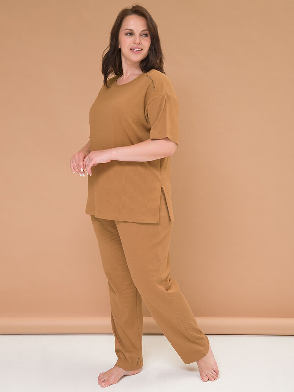 Утепленные женские брюки свободные с идеальной высокой посадкой. Брюки на резинке, прямой крой, подойдут для любой фигуры, подчеркнут достоинства и скроют недостатки. Без карманов, изящество в простоте. Приятная для кожи ткань в рубчик. Стильные теплые штаны женские это базовый гардероб для межсезонья, осени и зимы. Модные вещи для современных девушек и женщин - это прежде всего удобная повседневная одежда, поэтому брюки должны быть универсальные, подходящие для работы, для офиса, одежда для дома, как домашние и спортивные штаны. В размерном ряде представлены красивые женские брюки больших размеров.