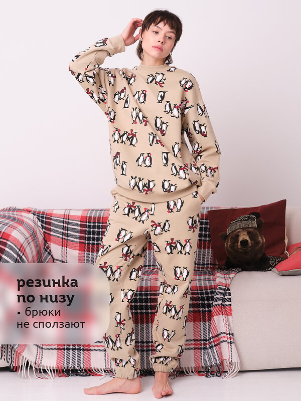 Костюм теплый женский с начесом. Оверсайз силуэт дарит свободу движений и комфорт. Яркий принт (рисунок) придаст настроению и создаст уют. Костюм домашний женский с брюками выполнен в оловер принт - самый тренд сезона! В составе ткани качественный 100% хлопок, поэтому костюм из футера с начесом отлично пропускает воздух, легкое и мягкое, долго сохраняет форму даже после множества стирок, в меру эластичный и износостойкий, практичный для регулярного применения. Материал приятный для соприкосновения с кожей. Теплый спортивный костюм состоит из свитшота и брюк умеренного объёма. В поясе и по низу брюк мягкие и широкие резинки — не перекручиваются и не давят. Манжеты и отделка горловины из эластичной рибаны — они не растягиваются, джемпер удобно надевать и снимать. Подходит для кругологодичного применения: летом, зимой, весной, осенью (демисезон и в межсезонье). Трикотажный костюм женский одинаково практично для повседневной носки, в домашних условиях и для сна, для занятий спортом и фитнесом, путешествий и туризма, во время активных игр, прогулок с друзьями и родителями. В таком ты понимаешь - это твое, это топ! Можно подарить дочери и внучке на День рождения, 8 марта, Новый год и Рождество. Помните о правильном уходе за изделием: рекомендуется стирать при температуре не выше 30 °C, без предварительного замачивания, с изнанки. Это поможет сохранить качество и цвет пижамы на длительное время. Не забывайте о выборе правильного размера. Используйте таблицу размеров на фотографии, чтобы выбрать подходящий вариант для вашей девочки. Обратите внимание, что цвет товара на экране вашего устройства может отличаться от реального.