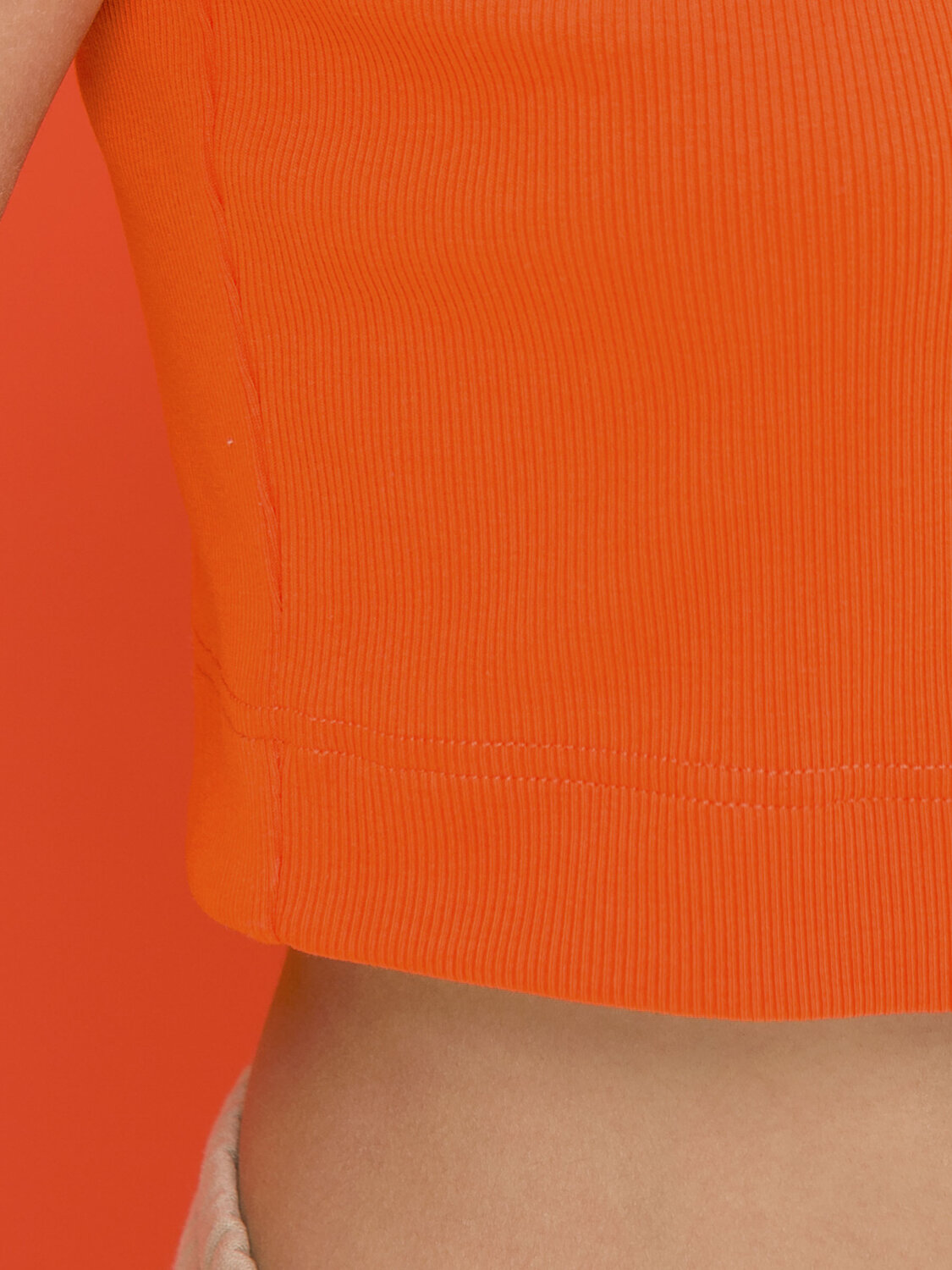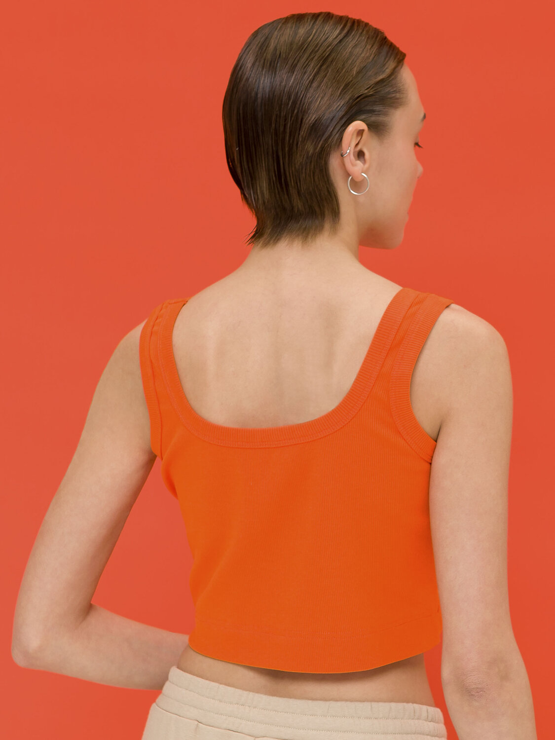 Женский кроп-топ из модной ткани в рубчик. Высокое содержание хлопка и вискозы в составе ткани делают эту модель мягкой, приятной на ощупь и отлично подходящей для жаркой погоды. Благодаря эластану изделие не теряет форму. Горловина с классическим вырезом-каре. Широкие лямки топа скрывают бретели нижнего белья. Проймы и горловина с широким пайпингом — актуальный летний тренд. Такая модель подходит как для летнего отдыха, так и для занятий спортом. Лаконичный дизайн позволяет сочетать этот топ с различными шортами, юбками и брюками. Его удобно брать с собой в поездки: он практически не занимает места в чемодане и при этом с ним можно создать много разных образов.