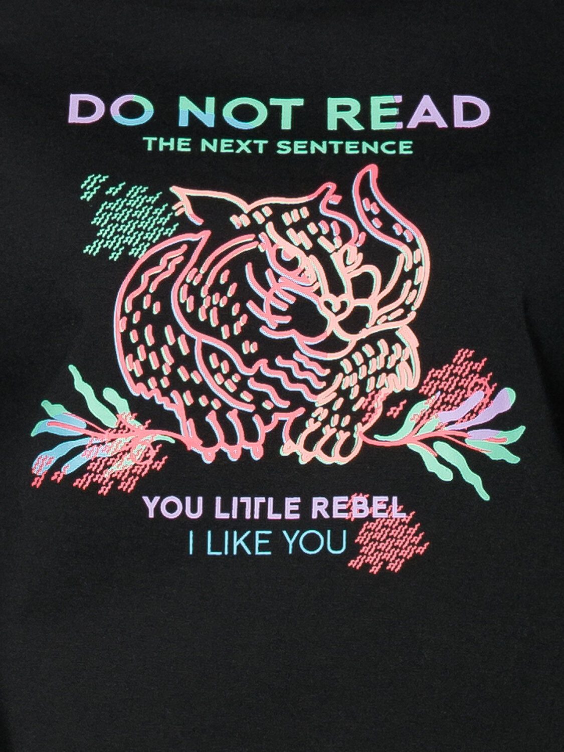 Новинка! Джемпер женский большого объема со спущенным плечом, горловиной из рибаны и стойким эластичным принтом в стиле неоновых красок. Перевод Не читай следующее предложение. Ах ты маленький проказник. Я люблю тебя.