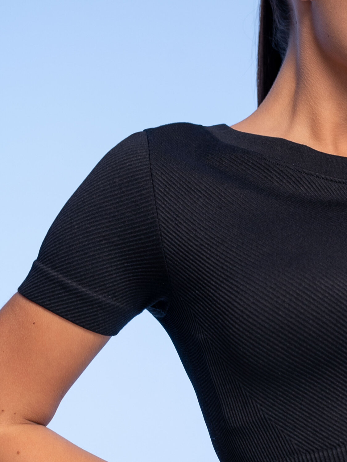 Спортивная женская футболка из эластичной и плотной микрофибры. Майка приталенного силуэта с короткими рукавами и округлым вырезом горловины выполнена из материала с оригинальным ритмом рубчика – стильно и женственно. Футболка укороченная женская для фитнеса и йоги сделает тренировки легкими, движения свободными, а занятия спортом в радость. Комфортная майка для женщин подходит для тренировок и для занятий в тренажерном зале, пилатеса, для бега, для йоги и фитнеса, занятий танцами и прогулок. Футболка однотонная, без принта, неприхотлива в уходе. В составе ткани полиамид и эластан – топ легко стирается и быстро сохнет, надолго сохраняет первоначальные форму и цвет, не просвечивает. Спортивная одежда для девушек прочно вошла в современные образы, стирая грань между повседневной и одеждой спортивного стиля. Модная футболка – это не просто одежда для фитнеса, это базовая вещь в женском гардеробе. Подходит женщинам, девушкам, девочкам-подросткам. В линейке представлены следующие размеры: XS-S (42-44), M-L (46-48). Футболку можно надевать под пиджак, под рубашку, в качестве первого слоя под одежду. Модель представлена в трёх цветах: синяя футболка, фиолетовая и чёрная. Она отлично сочетается с джинсами, спортивными легинсами, велосипедками. Идеальная футболка для спорта. Прекрасный подарок маме, сестре или подруге на любой праздник. Выбирайте нужный размер по таблице размеров на фото. Цвет товара на экране вашего устройства может отличаться от цвета изделия вживую.