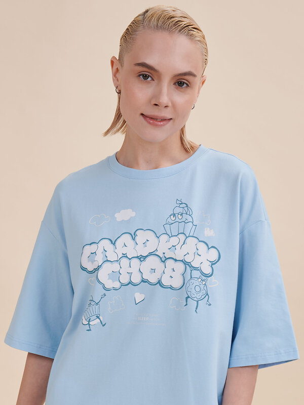 Стильное женское летнее платье футболка длиной до колена. Трикотажное платье оверсайз прямого кроя с коротким рукавом. Однотонное платье-футболка с принтом – базовый элемент женского гардероба. Повседневное платье свободного кроя подойдет для любой фигуры. В составе ткани изделия преобладает высококачественный хлопок – платье мягкое и отлично пропускает воздух, позволяя коже дышать. Эластан помогает модели надолго сохранить первоначальную форму. Милый принт в виде сладостей с надписью актуальным шрифтом, напоминающим облака: "Сладких снов". Принт эластичный и прочный, отлично переносит многочисленные стирки. В линейке представлены следующие размеры: XS (42), S (44), M (46), L (48), XL (50). Просторное платье в спортивном стиле подходит как женщинам, так и девушкам, девочкам-подросткам. Модель представлена в двух трендовых цветах: голубом и розовом. Свободное платье оверсайз идеально для носки дома, комфортного сна, пижамной вечеринки. Платье-майка подходит для повседневного летнего гардероба, прогулок, отдыха, пляжа. А также модель удобна для беременных. Женское платье-футболка – чудесный подарок для мамы, сестры или подруги на любой праздник. Выбирайте нужный размер по таблице размеров на фото. Цвет товара на экране вашего устройства может отличаться от цвета изделия вживую.