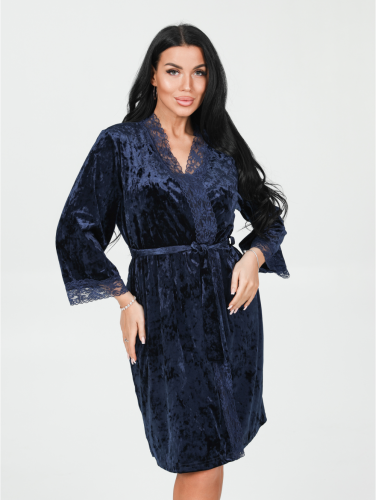 Пеньюар – лучшее модное изобретение, способное подчеркнуть женскую сексуальность. Он может стать изюминкой любого образа, подарить женщине уверенность в себе и любовь мужчины. Представляем Вам очаровательный комплект из роскошного бархата с отделкой из мягкого кружева. Он состоит из двух предметов: халат-пеньюар и сорочка на тонких бретельках.