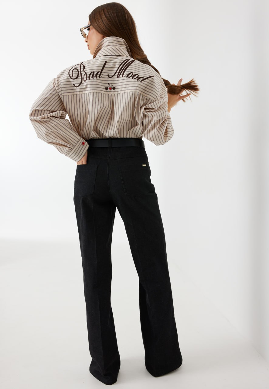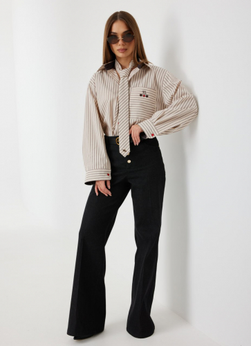4258 Брюки клеш из джинсовой ткани ЧЕРНЫЕ