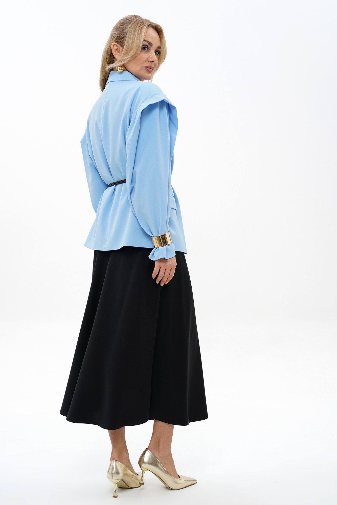 Юбка полуприлегающего силуэта типа «рыбки», раскроена по косой, без пояса на обтачке, с застёжкой на потайную молнию в левом боковом шве
