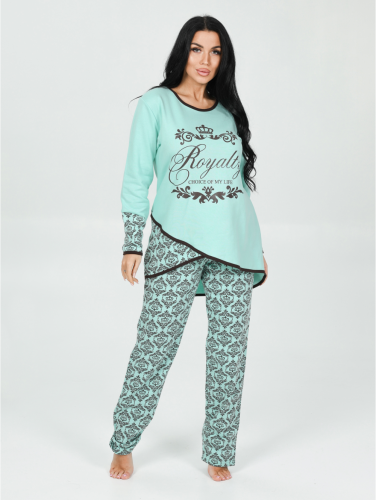 Девушки обожают наряжаться не только днем, но и ночью. Именно стильная и красивая пижама позволяет чувствовать себя круглосуточно привлекательной. Стоит напомнить, что от этого изделия зависит не только Ваше хорошее настроение, но и качество сна. Представляем Вам нашу пижаму ЛУРДЕС, изготовленную из двух видов тканей, прекрасно сочетающихся между собой. Комплект изготовлен из хлопковой ткани футер с начесом, состоит из кофты с длинным рукавом и брюк.
