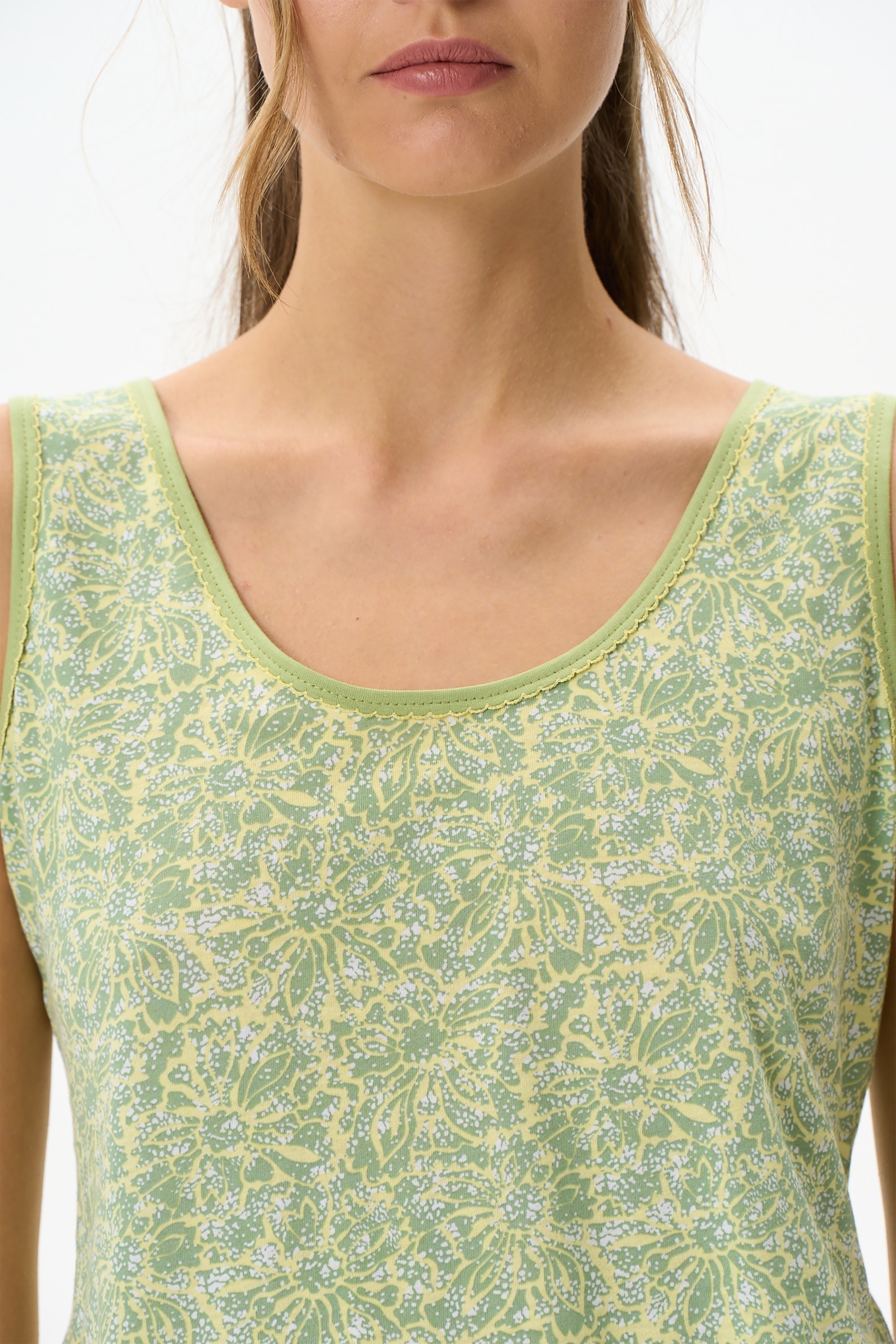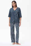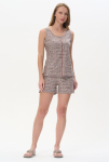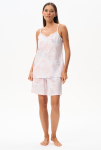 Пижама выполнена из хлопкового полотна. У майки круглый вырез горловины и проймы окантованы и декорированы фестонами. Шорты с карманами и пояс с эластичной тесьмой внутри. Рост модели 177см.