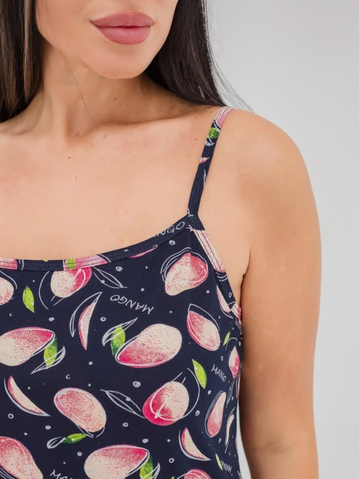 Пижама женская на тонких бретельках, шорты на резинке без карманов. Состав: 100% хлопок ( набивное кулирное полотно).