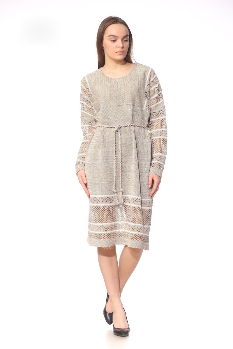 Описание: Платье с поясом, трикотаж с ажуром,
