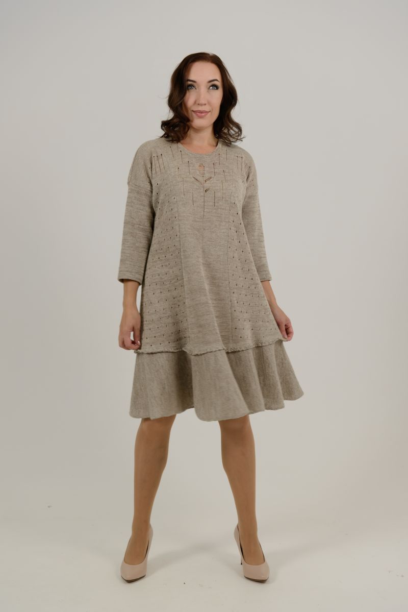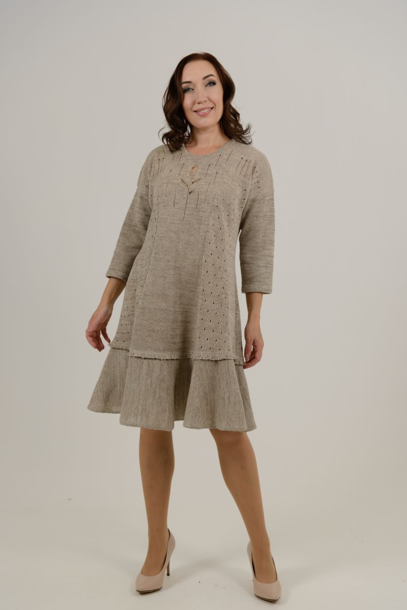 Описание: Платье прилегающего силуэта, с оборкой внизу, рукав длиной 3/4, линия плеча спущенная, трикотаж с ажуром.