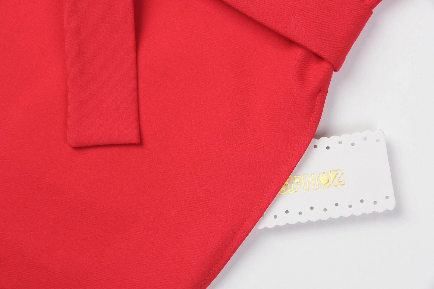 Элегантное офисное платье свободного объема имеет покрой со спущенной линией плеч. Платье отлично сидит на фигуре любого типа телосложения, пояс подчеркивает линию талии. Воротник мягкая стойка и манжеты на рукавах придают образу немного строгости. Состав трикотажа: 75% хлопок, 20% полиэстер, 5% спандекс. красный