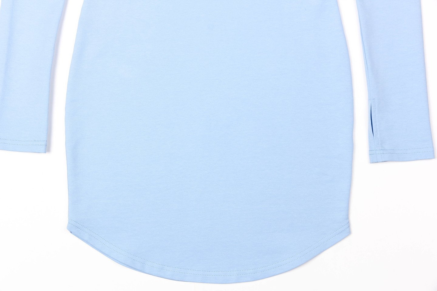 Самый женственный фасон облегающего фигуру платья мечтает носить каждая. Главная особенность модели - платье великолепно подчеркивает все достоинства фигуры. Платье может выглядеть очень нарядно, а также вполне повседневно, если одеть его под жакет или объемный свитер. Особенности модели - удлиненный рукав с отверстием под палец и фигурная линия низа - линия бока короче на 7 см. Данные элементы очень популярны среди младшего поколения. Состав ткани: 75% хлопок, 20% полиэстер, 5% спандекс. голубой
