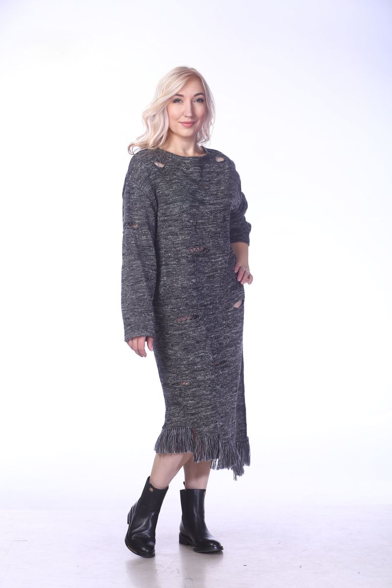 Описание: Платье с неровной линией низа, трикотаж с декоративными дырами