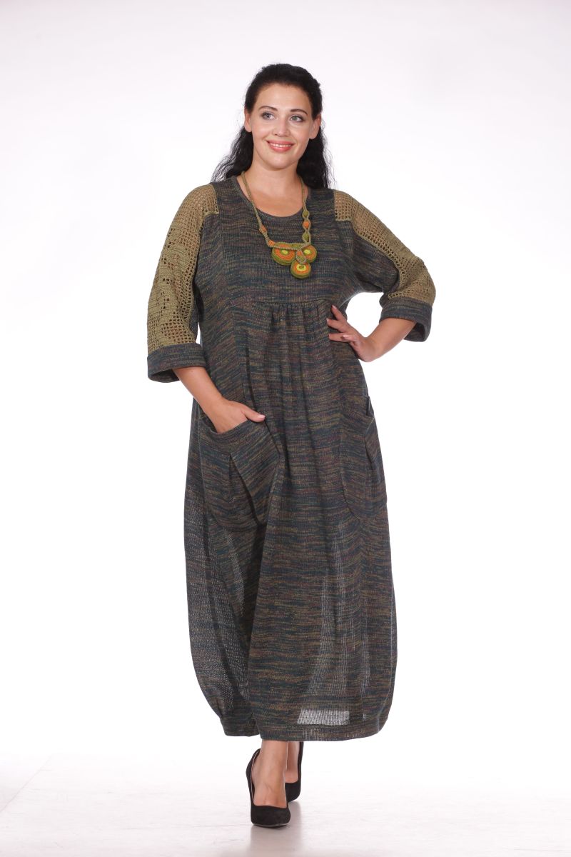 Описание: Платье с карманами, вставки крючок, трикотаж меланж.
