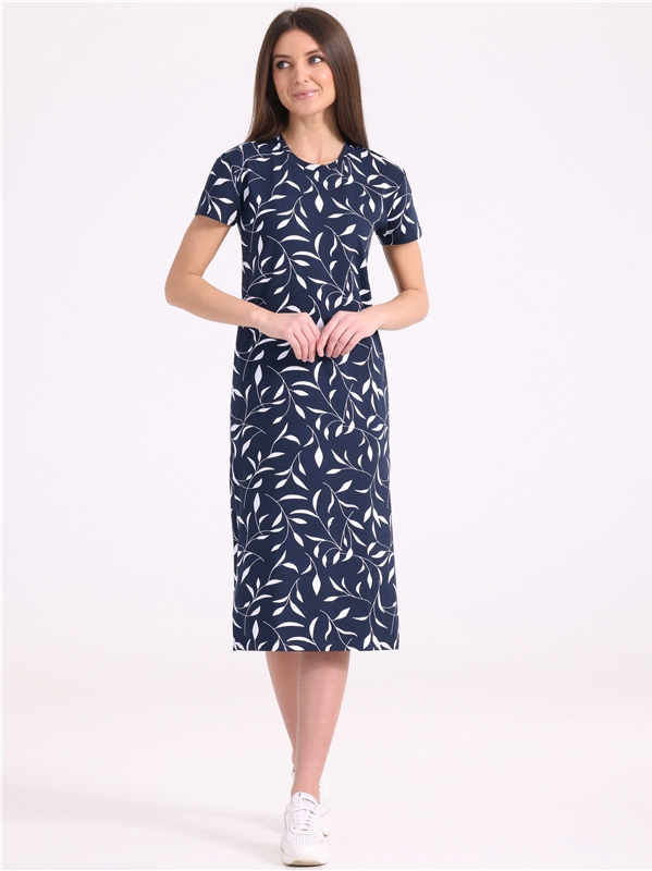 кулир с лайкрой / хлопок 92% + лайкра 8% - / белые листья на темно-синем / -