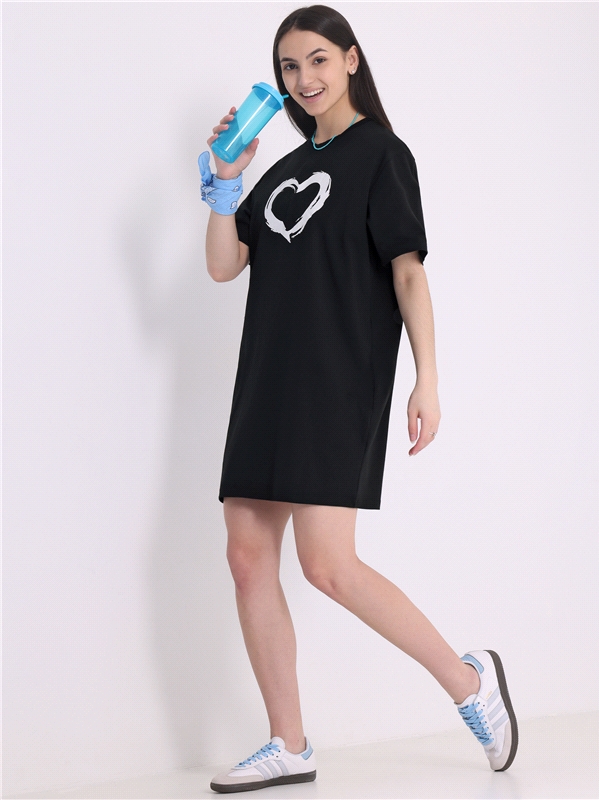 кулир с лайкрой / хлопок 92% + лайкра 8% черный / - / Сердце кистью