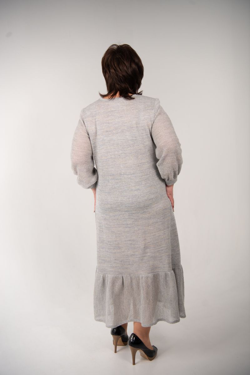 Описание: Платье с длинным рукавом на сборке, внизу оборка, отделка, трикотаж.