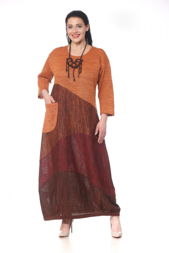 Описание: Платье с карманом, украшение бусы, трикотаж,