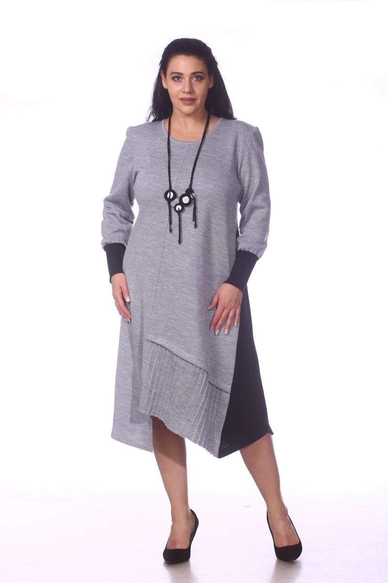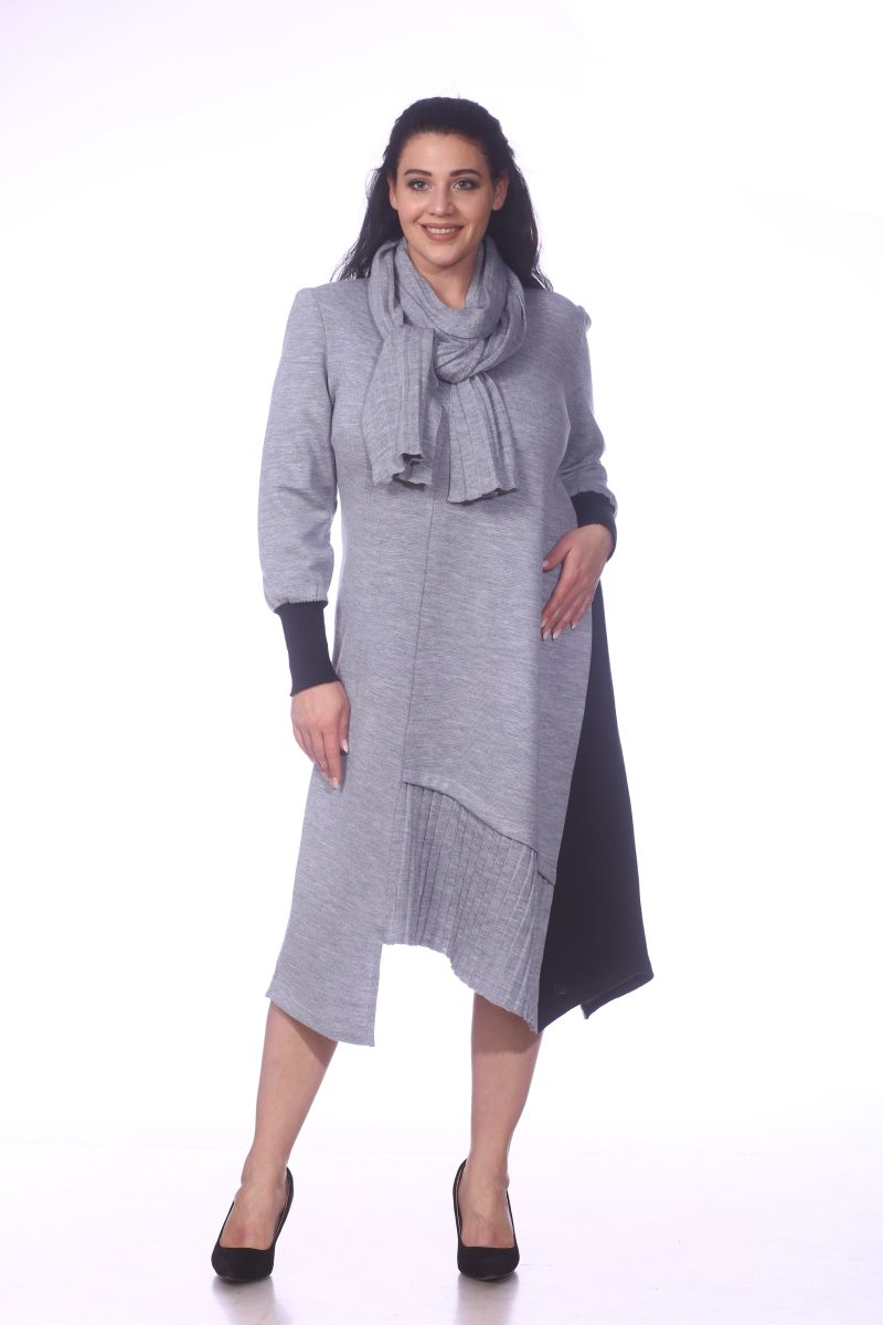 Описание: Платье с бусами (или с шарфом), трикотаж меланж.