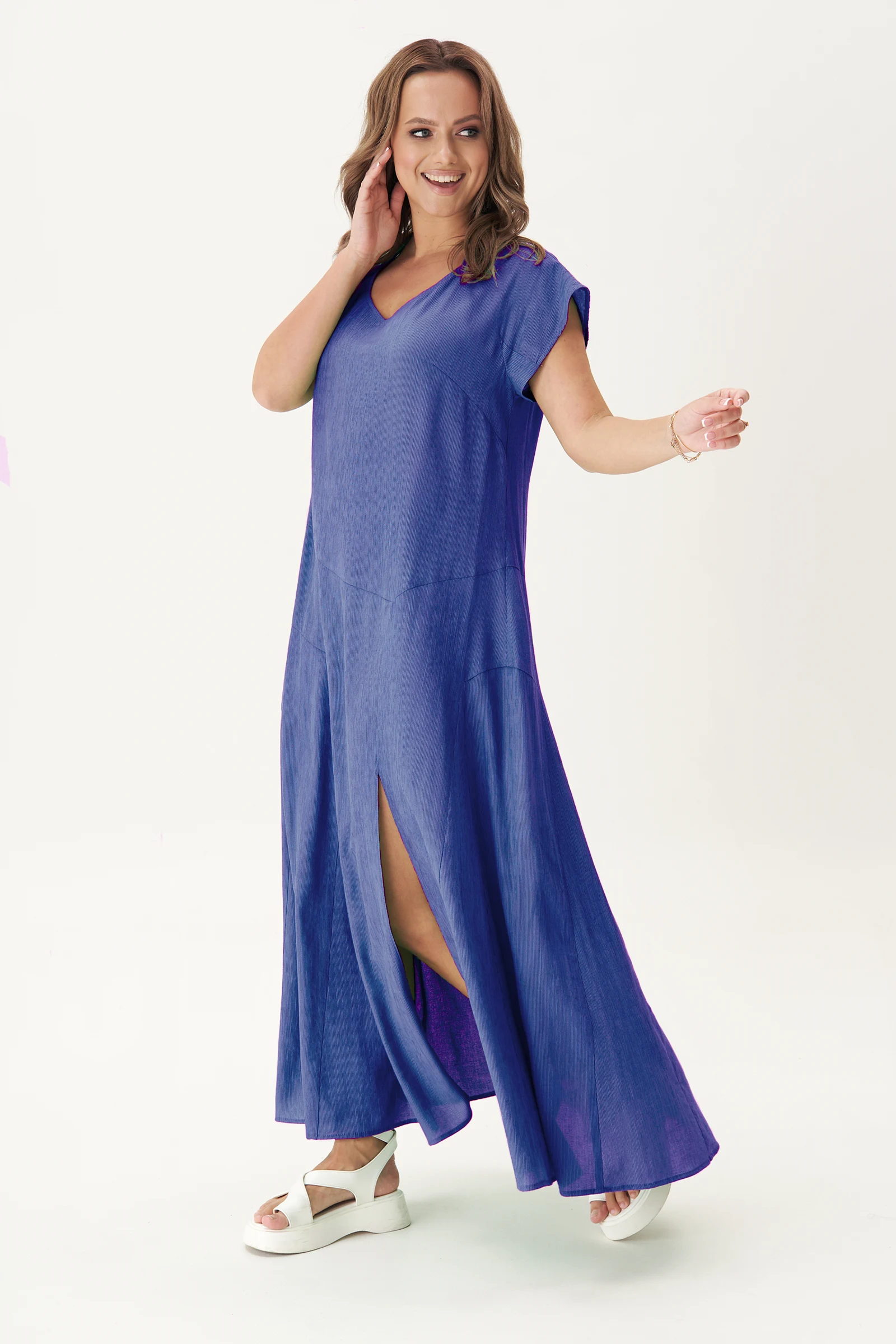 Чем может удивить платье, кроме принта? Правильно, кроем. Элемент неочевидной чувственности и сюрприза кроется в изделии с разрезом. Чем выше последний, тем горячее и интереснее игра, тем элегантнее походка, тем больше восхищённых взглядов задерживается на обладательнице интересного платья.Свободный А-силуэт с цельнокроенным рукавом, ассиметричные линии членения отрезной нижней части платья с коническими вставками и эффектным разрезом. Оригинальный вырез горловины с завязкой-бантом на спинке.Длина платья около 132 см. Длина рукава с плечом около 22 см.
