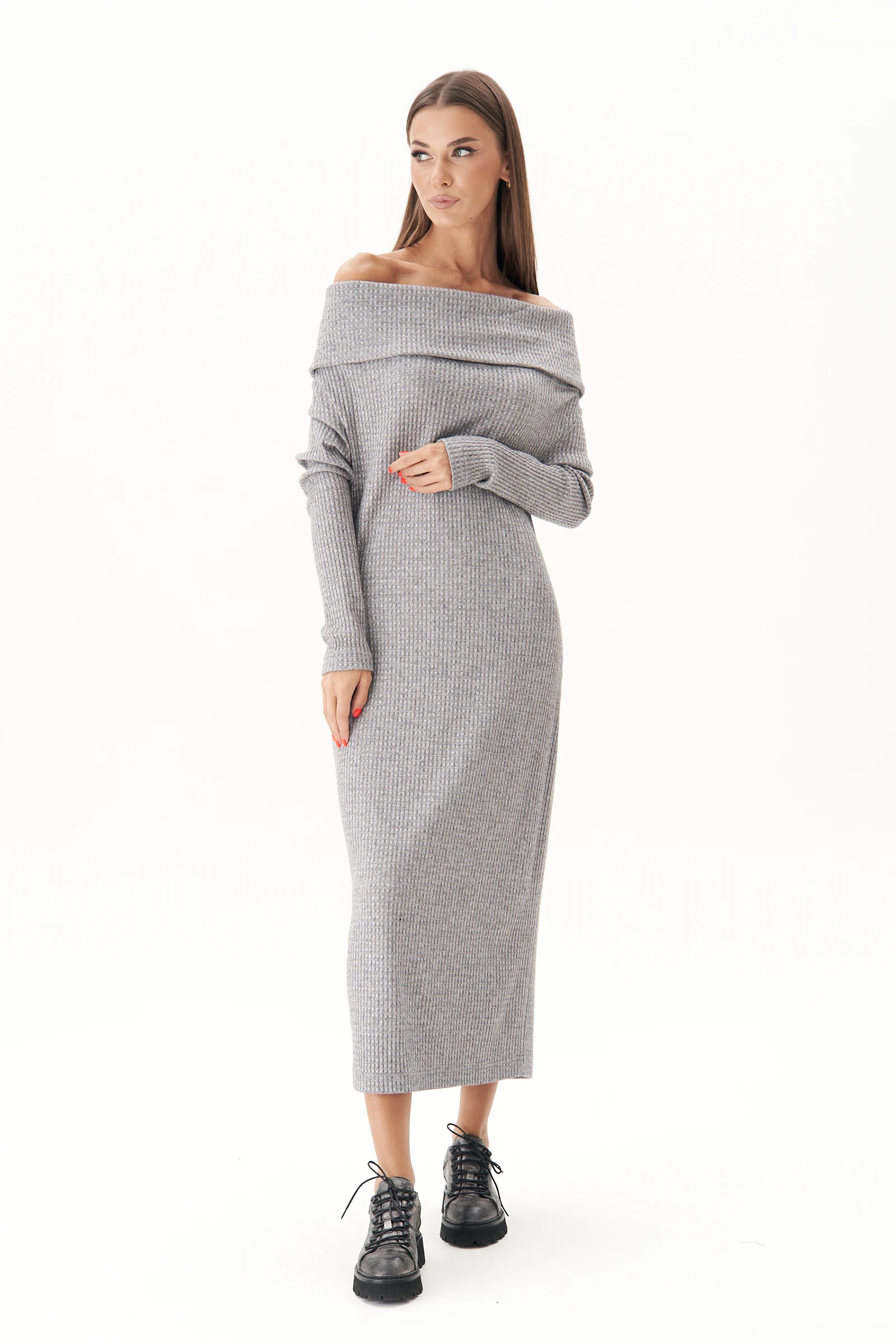 Трикотаж - это всегда модно: меняется только крой и детали. Главный плюс трикотажа - непринуждённость, комфорт и универсальность. Давно развеян стереотип о том, что трикотажное платье - нечто скучное. Платье с открытым декольте - это изысканно и актуально, тем более когда декольте легко трансформируется в воротник-хомут.Мягкий, уютный трикотаж с мерцающим эффектом, прилегающий силуэт, узкий втачной рукав и воротник-хомут.Длина платья около 90 см. Длина рукава около 62 см.
