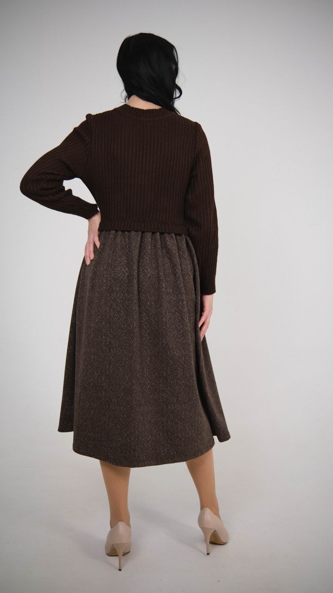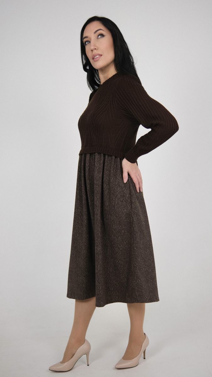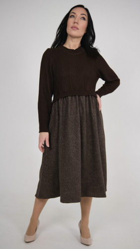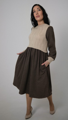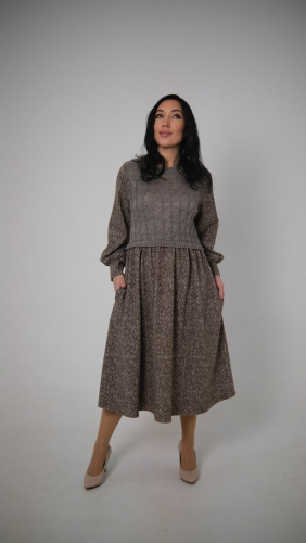 Описание: Платье, трикотаж с тканью, лен + п/шерсть, 15% шерсть, 35% вискоза, 50% полиэстер