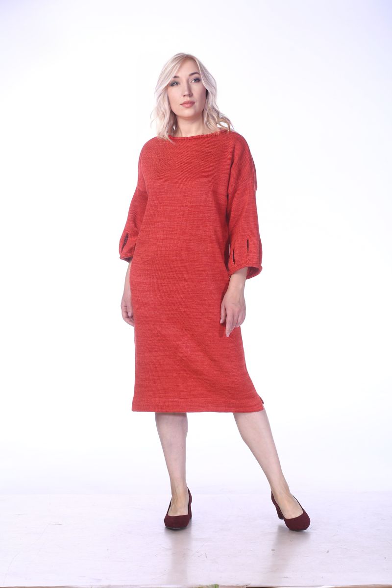 Описание: Платье свободного силуэта, рукав с декоративными дырами, линия плеча спущена, по бокам маленькие разрезы, трикотаж