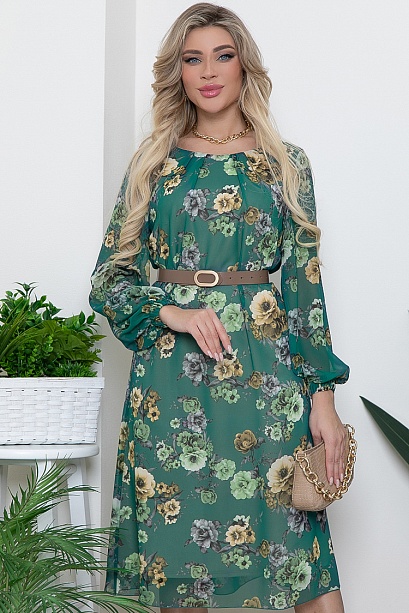 Платье свободного А-образного силуэта из шифона на трикотажном подкладе.Пояс в комплекте.Ремень в комплект не входит.