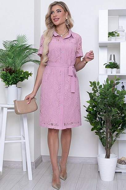 Платье-рубашка свободного силуэта из хлопкового кружевного полотна с контрастной отделкой и центральной застежкой на пуговицы.Воротник отложной на стойке.В комплекте нижнее платье из текстильного полотна и поясом.