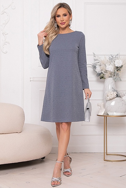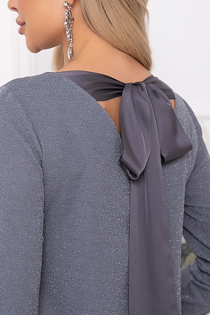 * Платье А-образного силуэта из трикотажного полотна с легким люрексом.Изюминка платья-вырез по спинке с завязывающимся бантом из шелка.