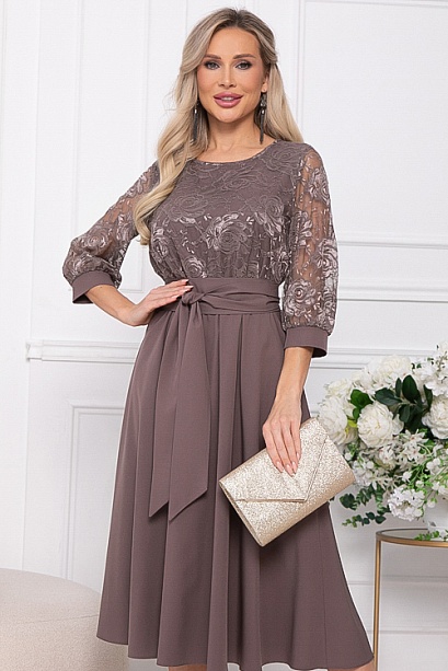 * Комбинированное платье,отрезное по линии талии присборено на эластичную резину с расклешенной  летящей юбкой.Кружевной лиф посажен на основную ткань. Длинный,широкий пояс из основной ткани в комплекте.