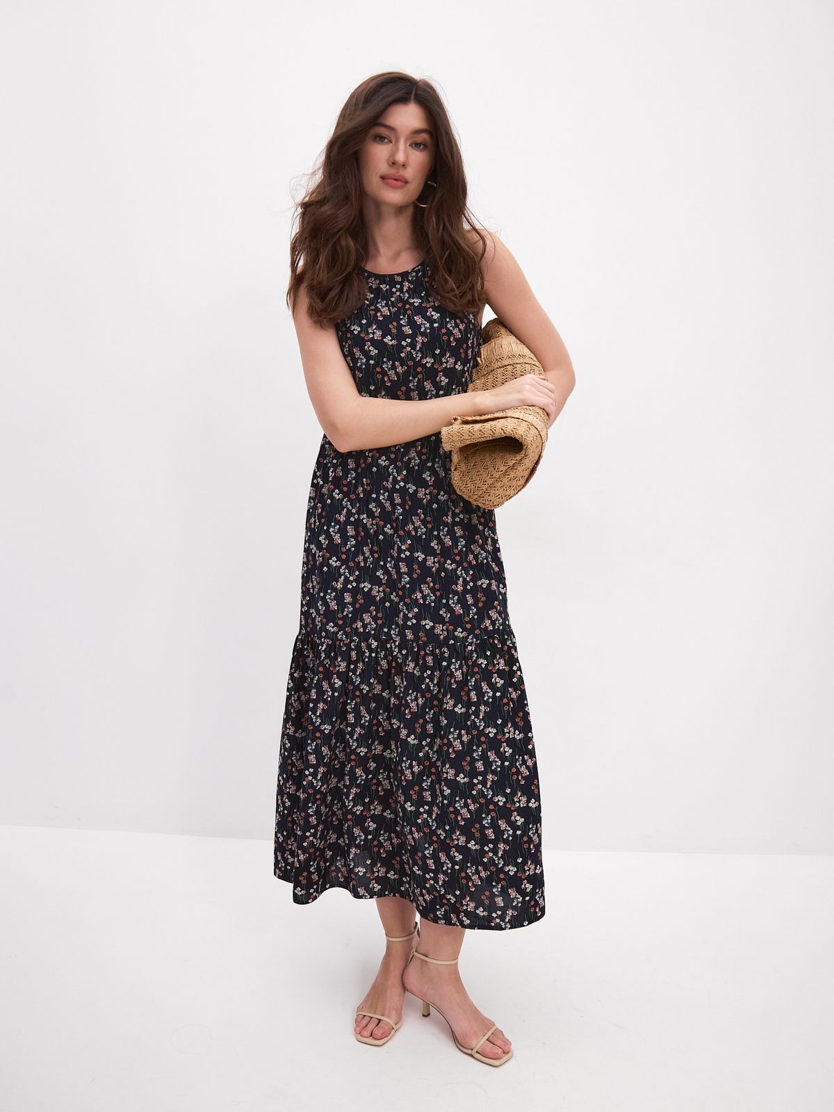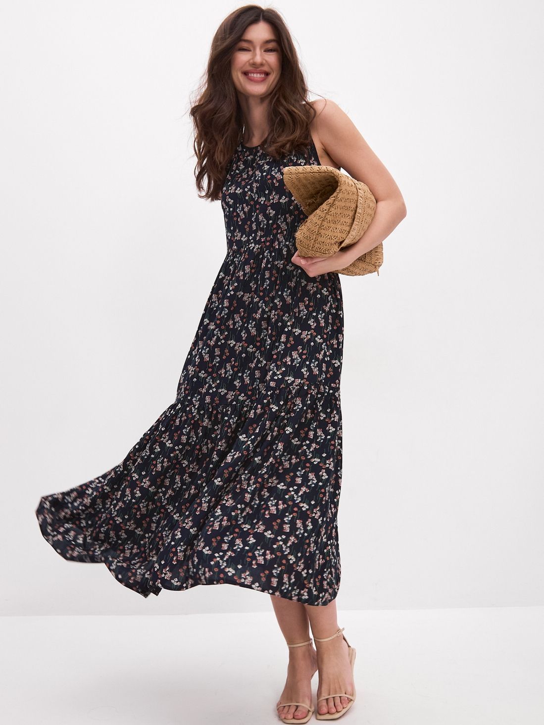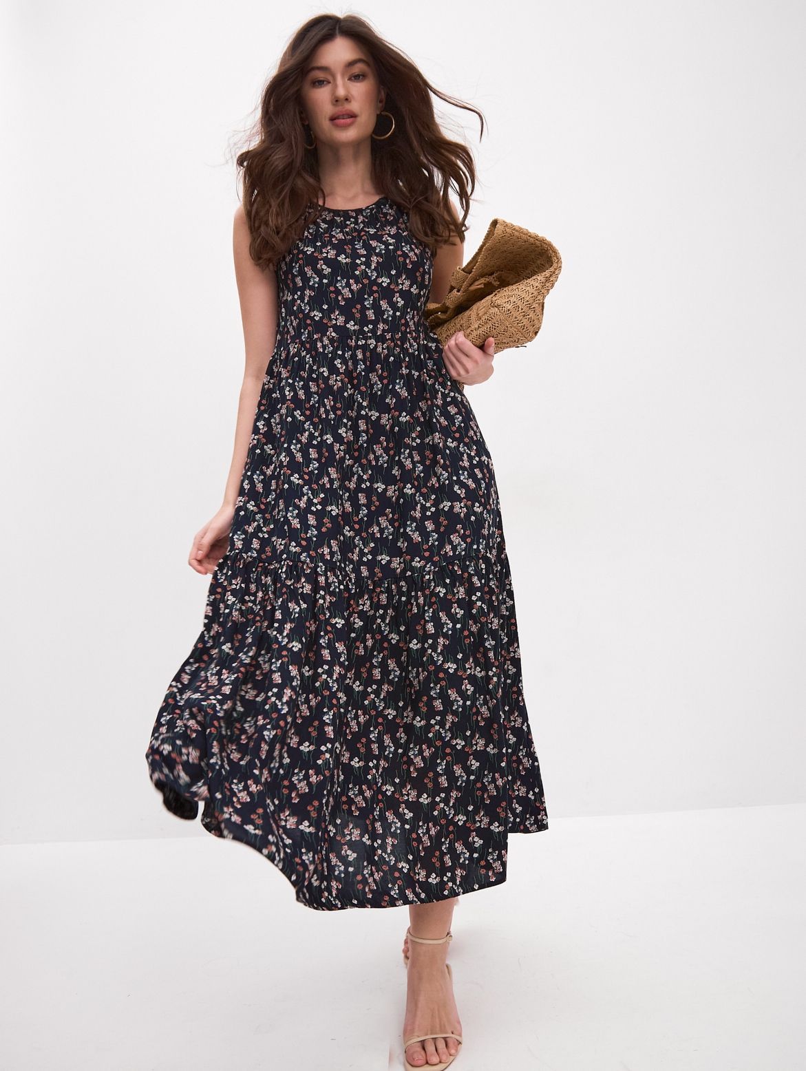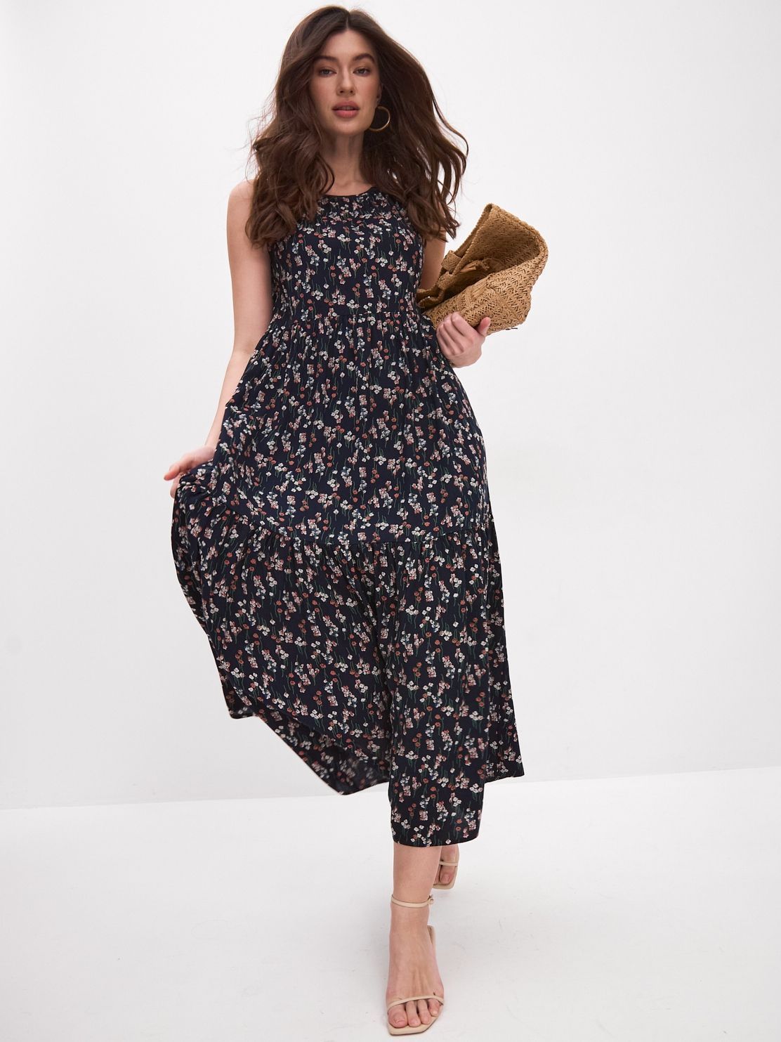 Платье бохо украшено красивым принтом, который поднимает настроение и добавляет изюминку вашему образу. Застежка-пуговичка на спинке.