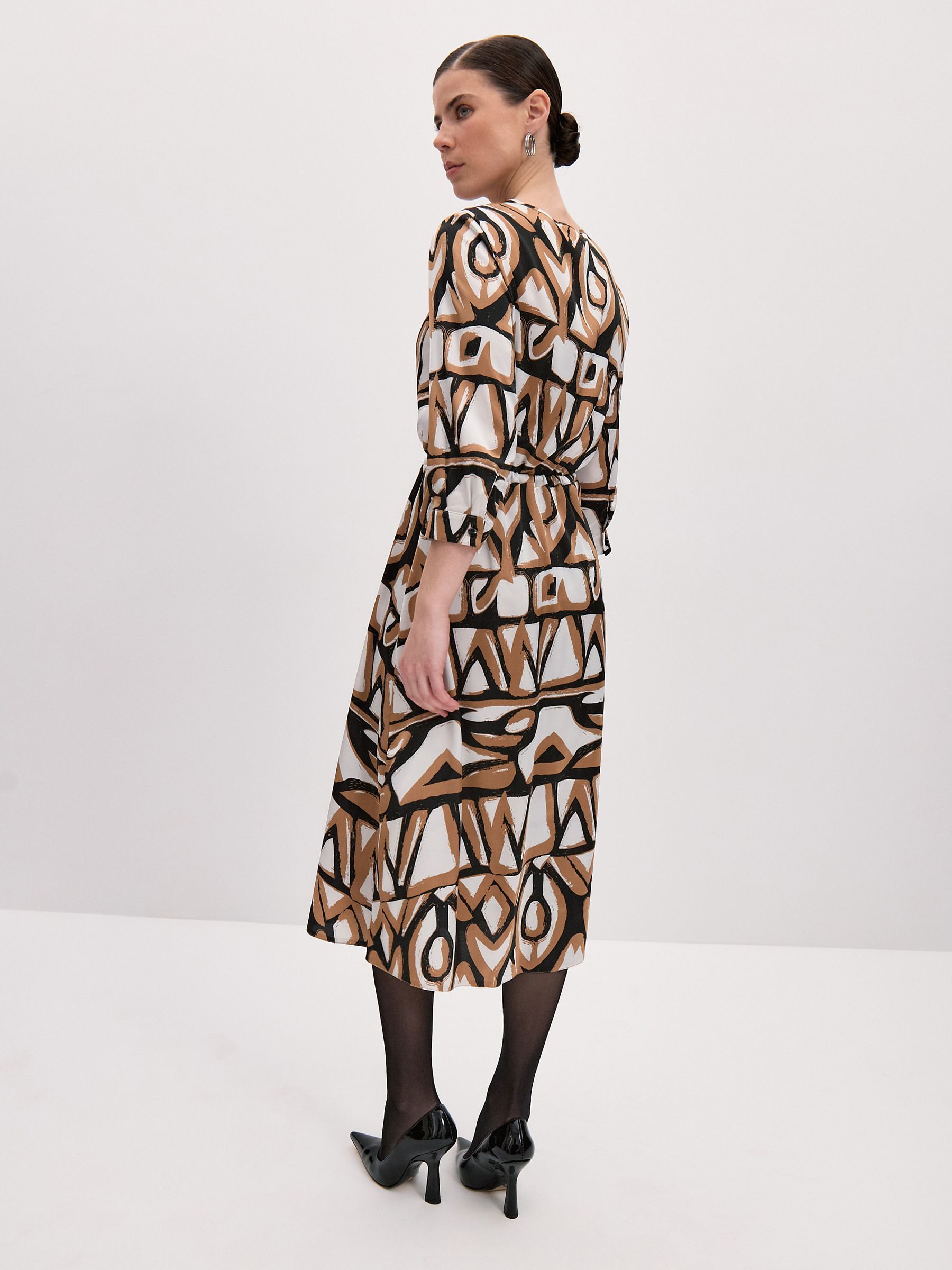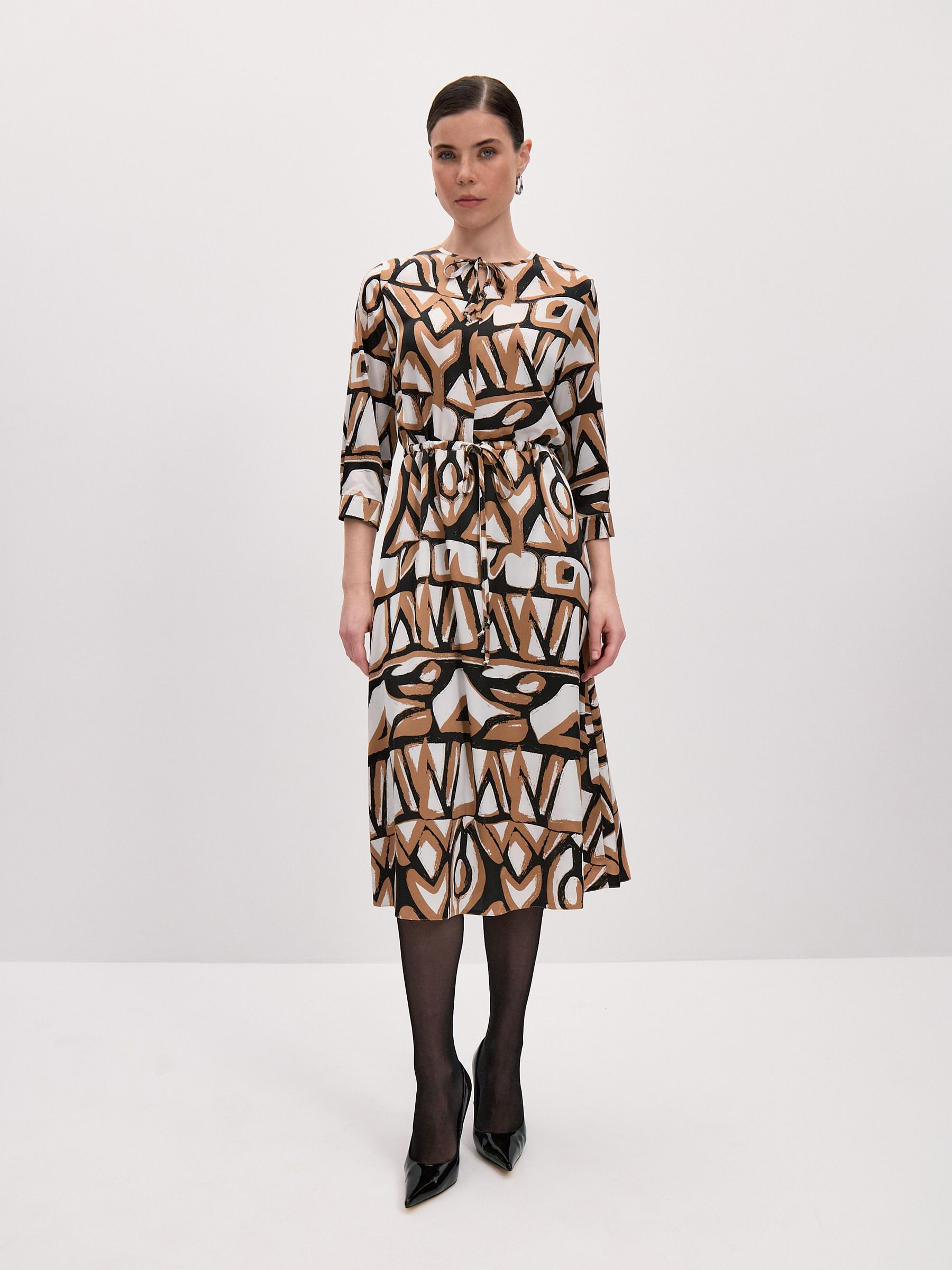 Миди-длина платья делает его универсальным вариантом для любого случая. Платье с кулиской и завязками позволяет регулировать силуэт и создавать разнообразные образы.