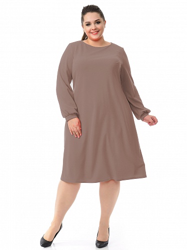 Платье А-силуэта из крепа с эластаном. Вырез горловины округлый. Рукав длинный, по низу легкая сборка, на манжете.