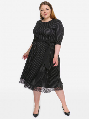 Платье А-силуэта из крепа с эластаном. Вырез горловины округлый. Рукав длинный, по низу легкая сборка, на манжете.